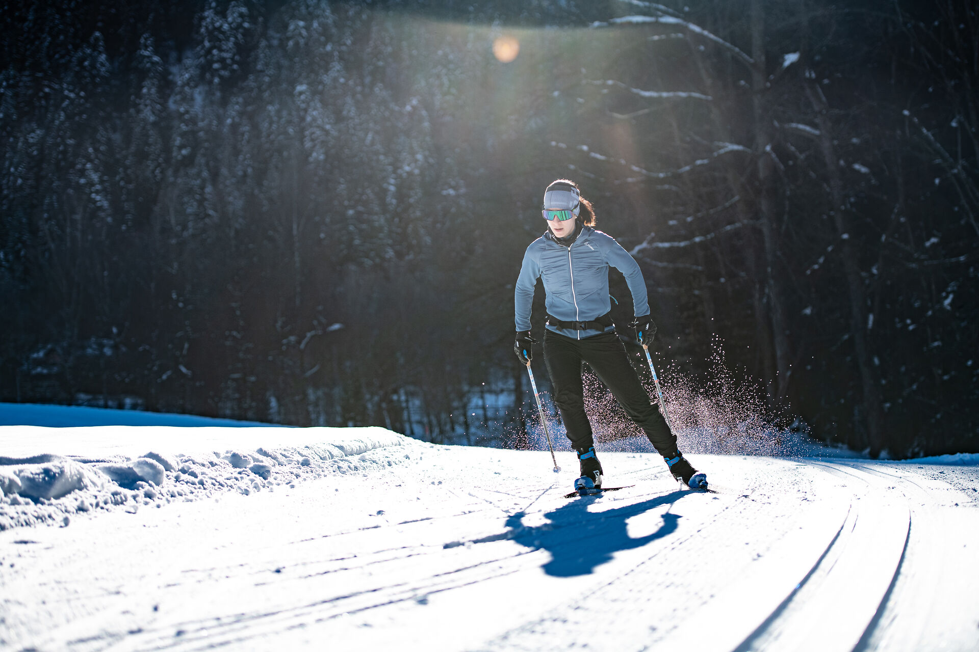 Die Sportloipe am Golfplatz Kitzbühel Schwarzsee-Reith ist täglich bis 21 Uhr beleuchtet und ideal für abendliches Langlaufen.