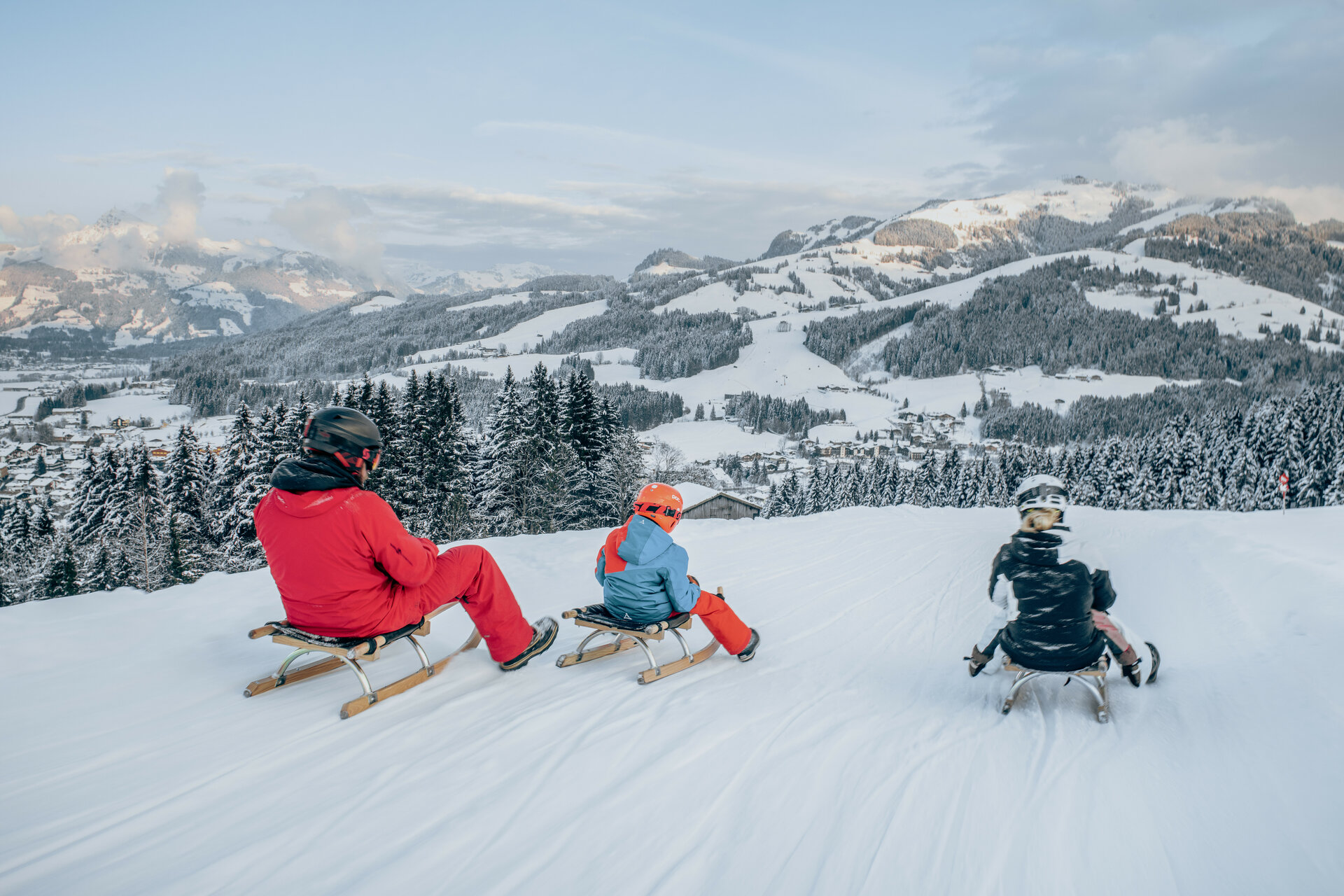 Das Skigebiet lässt sich in einige Bereiche unterteilen, die jeweils besondere Eigenschaften für unterschiedliche Bedürfnisse aufweisen. Auf der Westseite von Kitzbühel liegen die Gebiete Hahnenkamm, Jochberg und Pass Thurn, die alle verbunden sind und ein großes Gebiet bilden. Auf der Ostseite von Kitzbühel gibt es zwei kleinere getrennte Gebiete: das Kitzbüheler Horn, das besonders gut für Familien und Gruppen geeignet ist, und die Bichlalm, unser Skitourengebiet. Der Gaisberg auf der gegenüberliegenden Seite von Kirchberg bietet eine Rodelstrecke sowie eine Skitourenroute, während Reith mit seinen Anfängerhängen besonders für Kinder und Familien geeignet ist.