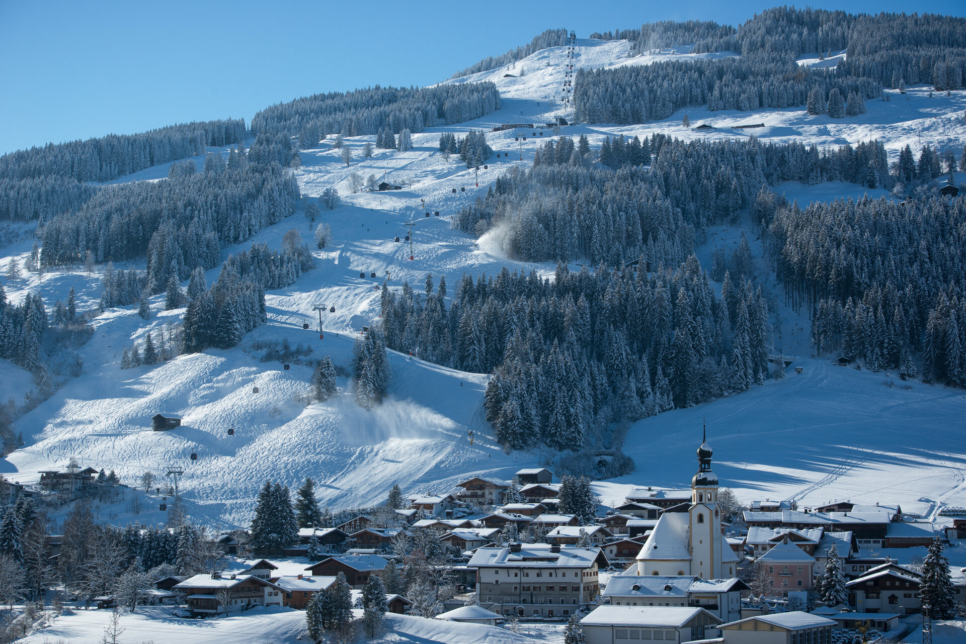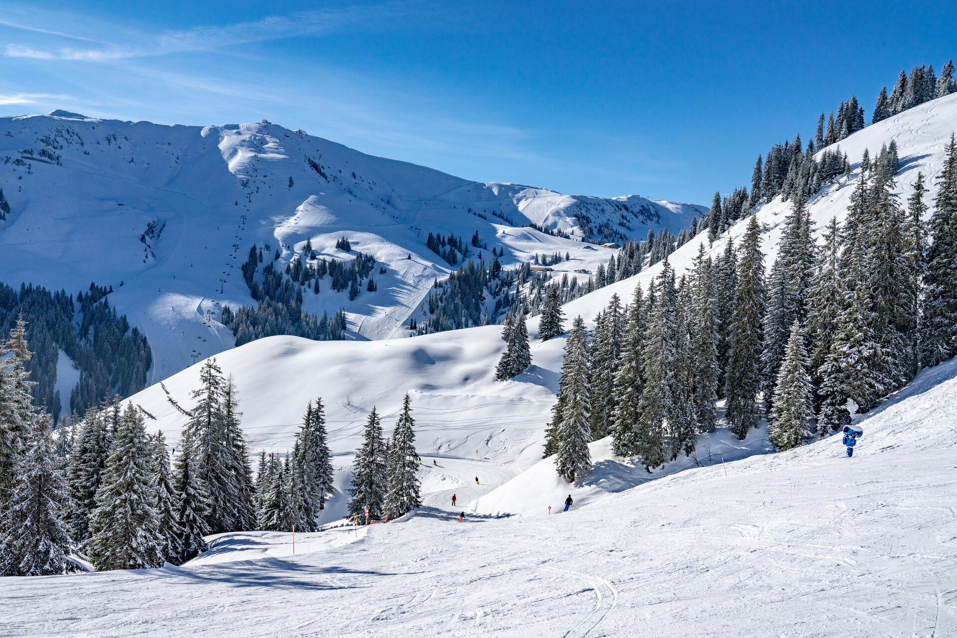 Oben neben der G9 Panoramabahn Bergstation, gibt es eine einfache Hang für Anfänger Skifahrer, blaue Pisten für mittel fortgeschrittene Skifahrer, ein Winterwanderroute, Langlaufloipe, und Skitourenroute. Alle können ober treffen auf der Pinzgablick Restaurant neben der Bergstation der Gondel.