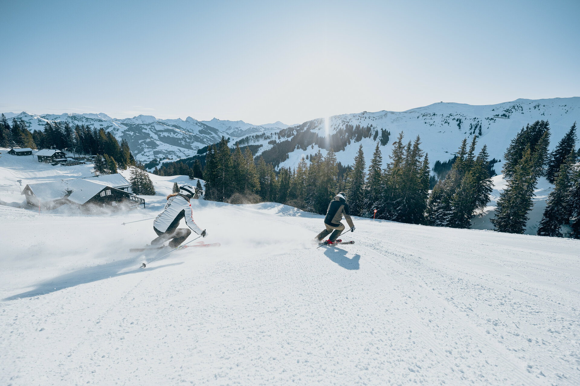 Wenn man mit der B1 Fleckalmbahn fährt, oben neben der Bergstation gibt es der Sonnenrast Restaurant, und dort gibt es auch der Piste 18 Sonnenrast dass gut für leicht fortgeschrittene Skifahrer ist. Von der Fleckalmbahn Bergstation, man kommt auch auf der Hahnenkamm Winterwanderroute.