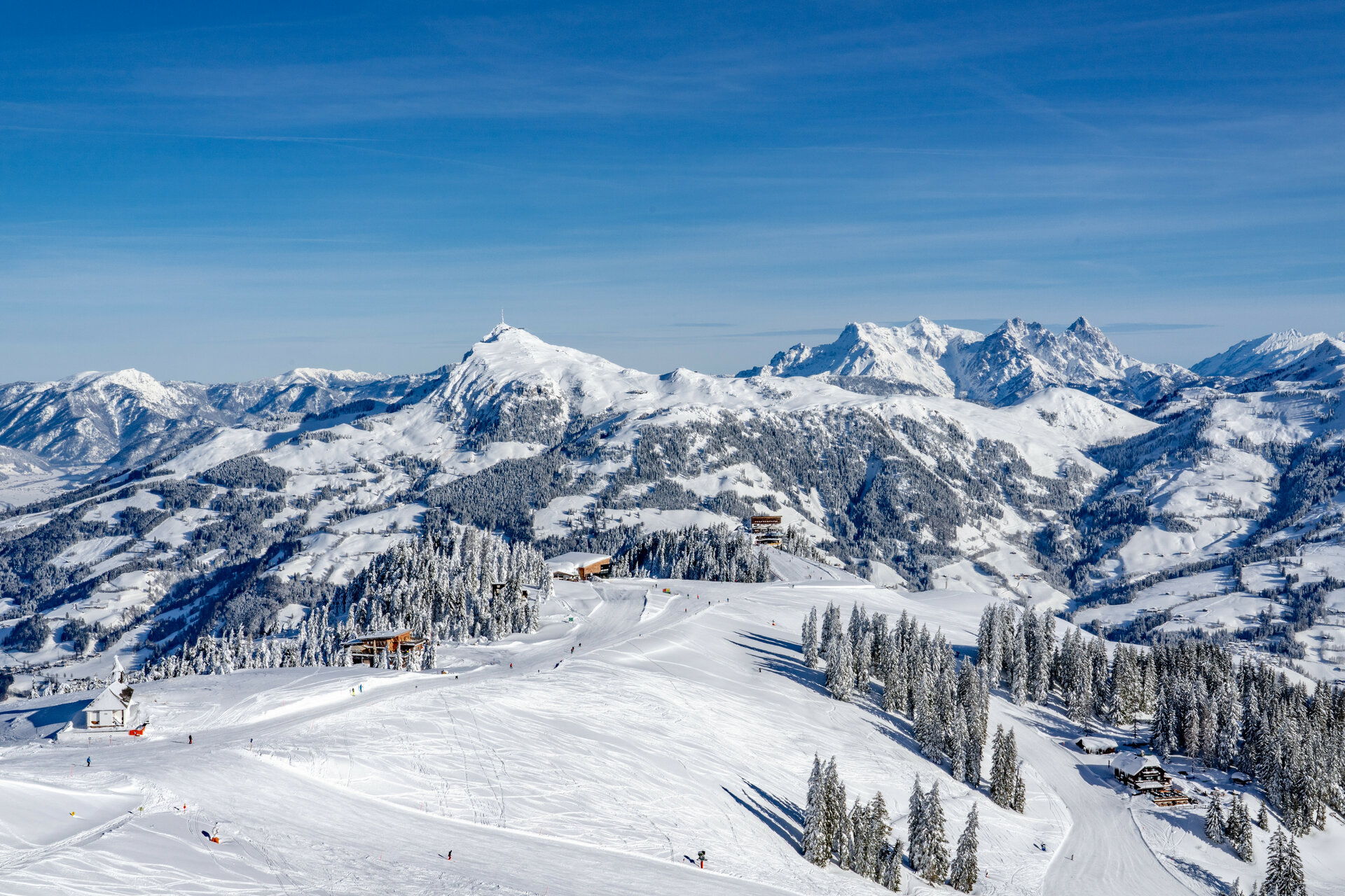 Das Kitzbüheler Horn ist ein hervorragendes Skigebiet für Familien und Gruppen mit verschiedenen Können-Stufen, oder Skifahrer und nicht Skifahrer. Der Family Park und die Anfängerhänge in die Mulde begeistern die Kinder, und geben Anfänger ein perfekte Übungsort. Gruppen können sich auf den Pisten aufteilen, aber trotzdem regelmäßig wieder treffen und zusammen zu Mittagessen gehen. Man braucht nie mehr als 2 Liftfahrten um alle Orten im Kitzbüheler Horn Skigebiet zu erreichen. Der Kitzbüheler Horn ist auch die Lieblingsgebiet für Snowboarder, mit einige breite rote Pisten, und wenig Ziehwege von der Mulde-Bereich bis auf der Gipfel. Für nicht Skifahrer hat der Kitzbüheler Horn ein schöner Winterwanderweg, und Langlaufstrecke. 3 Restaurants können auch ohne Ski erreicht werden.